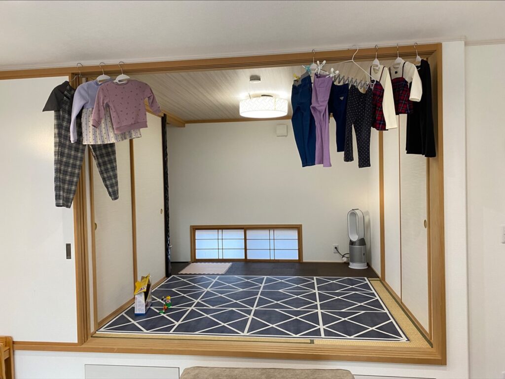 和室には物干し場が必要だと悟りました。もしリビングに洗濯物を干されたくないのなら、是非和室に洗濯物が干せるように検討してみてください。