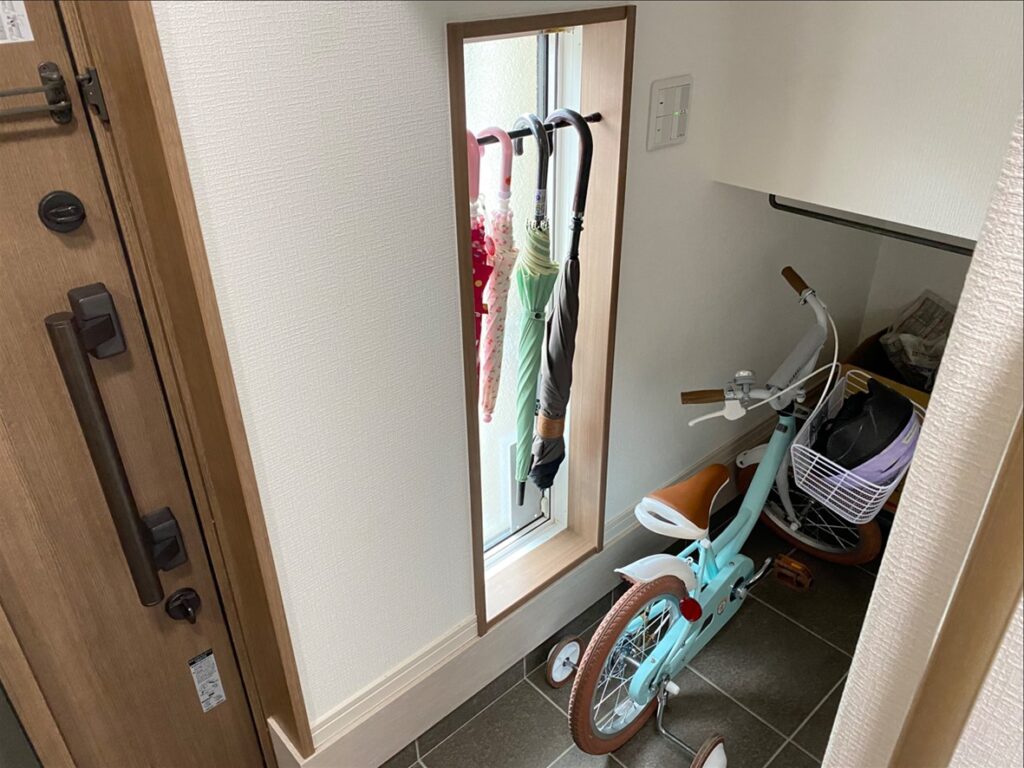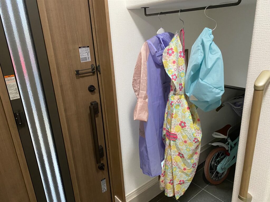 それは、濡れた傘、濡れた長靴、濡れたレインコートが玄関に置かれるからなんです。大人になったらあまり使わないので想像できませんでしたが、これらが玄関をジメらすんですよ。